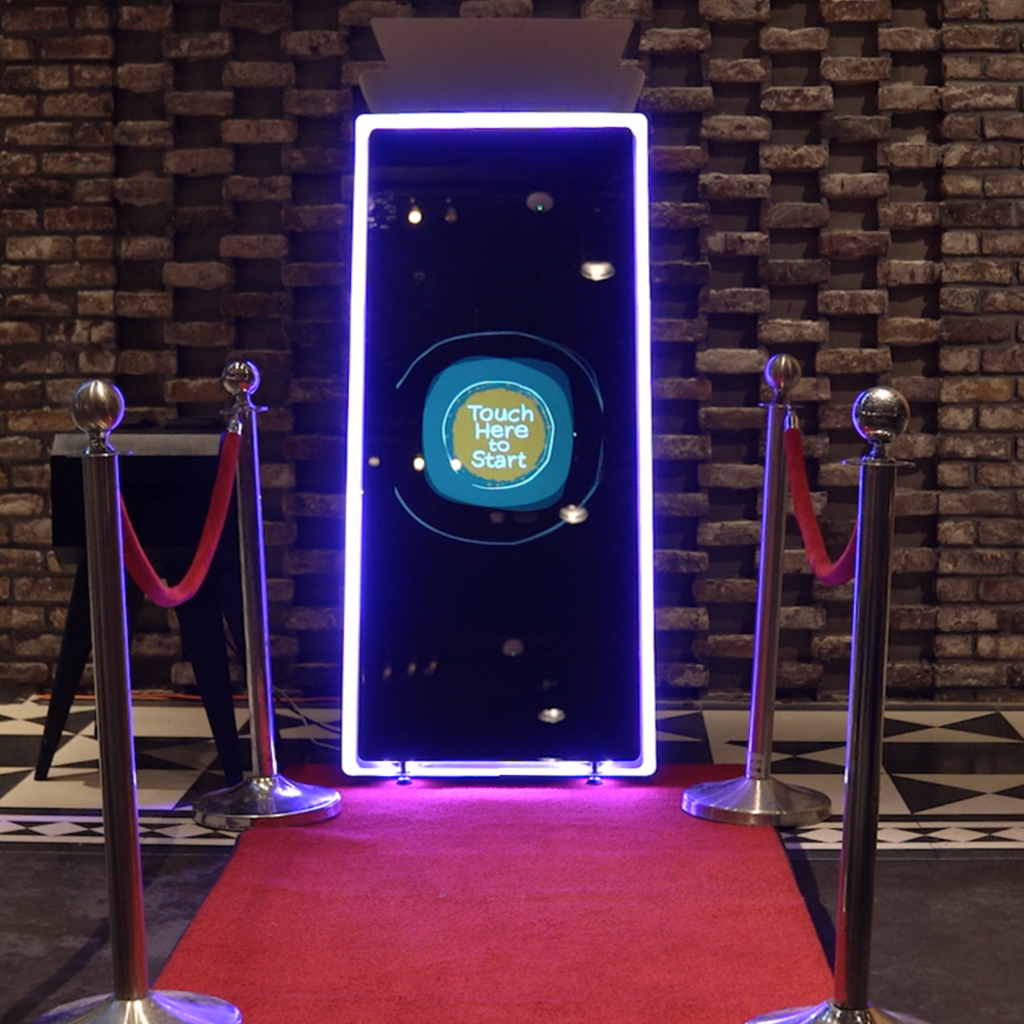Sleek, interactive, and undeniably fun, the Mirror Air is our modern showstopper. This full-length mirror booth invites guests to see themselves in the moment while playful animations, touch-screen prompts, and on-screen guidance keep the energy high and the laughs coming.